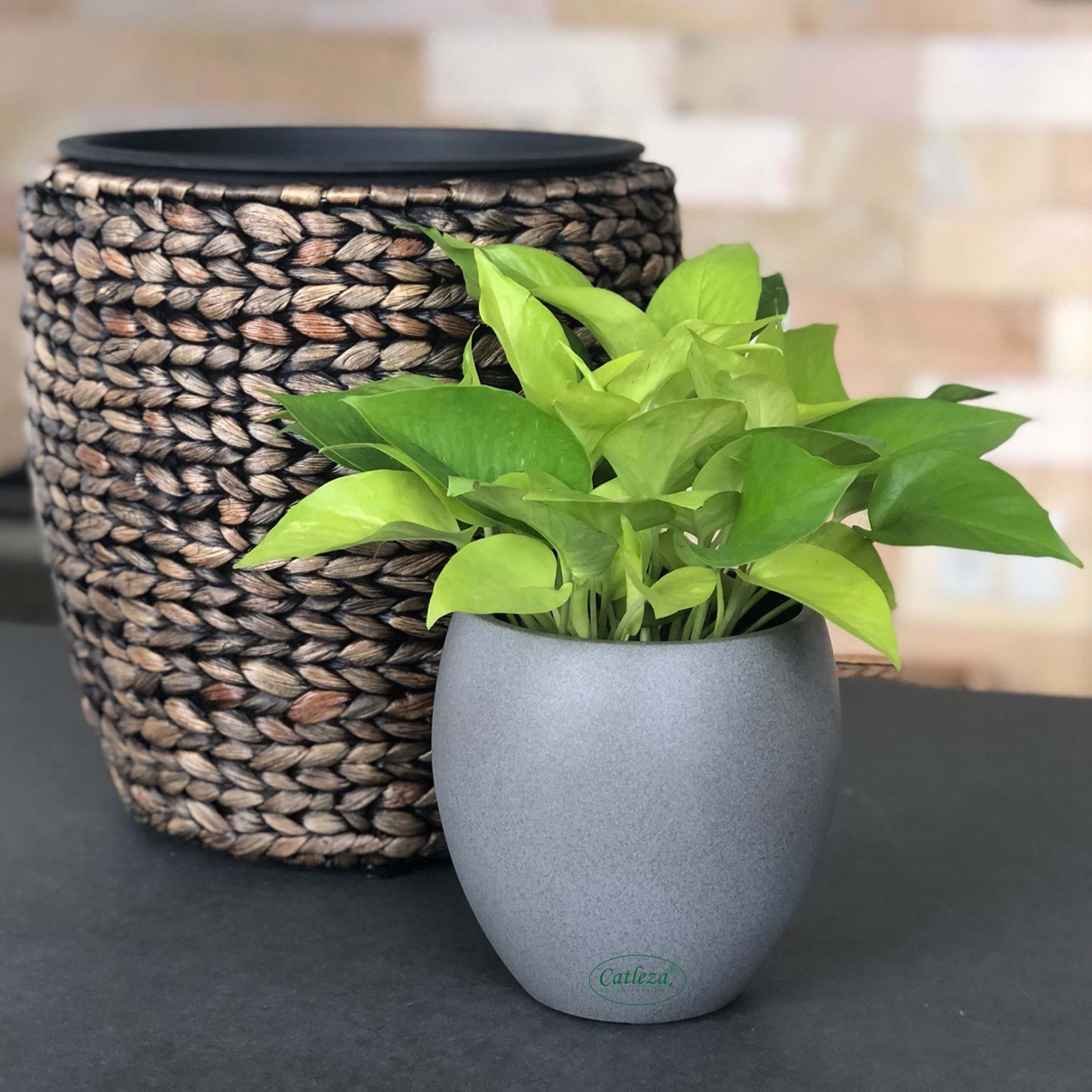 Tất cả sản phẩm của Catleza điều được sản xuất từ nhựa nguyên sinh, Đây điều là những loại nhựa nguyên chất, không pha tạp, không thêm phụ gia. Tất cả sản phẩm Catleza cam kết không chứa 4 chất kim loại nặng, không gây ảnh hưởng môi trường, có thể tái chế và điều quan trọng nhất là an toàn khi tiếp xúc kể cả trẻ em. - Khác biệt trong chất liệu: Tất cả Sản phẩm chậu cây Catleza được làm từ thủ công như sơn, đan, ghép nối,... Nên sản phẩm của Catleza có sự sắc sảo và tinh tế riêng: