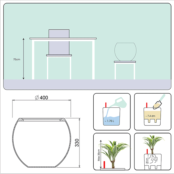 Thông số kỹ thuật chậu composite tròn giữa tự dưỡng Catleza: