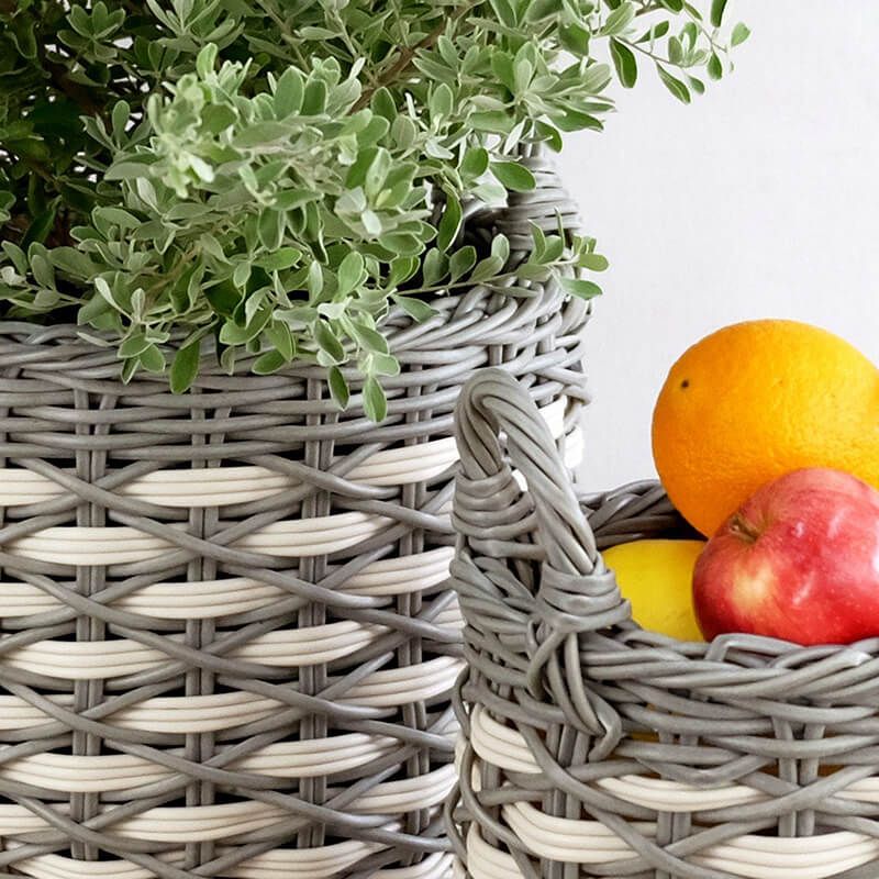 Giỏ giả mây - Mix màu trắng xám được thiết kế theo phong cách cổ điển nhưng không kém phần sang trọng.