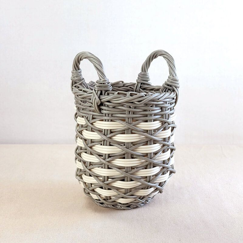 lấy cảm hứng từ thiên nhiên giỏ được đan từ 2 màu trắng và xám.